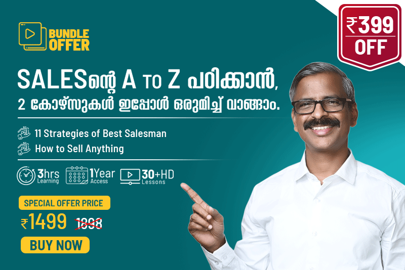 ശരിയായ സെയിൽസ് തന്ത്രങ്ങൾ ഉപയോഗിച്ച് എങ്ങിനെ ബിസിനസ് പുരോഗതി നേടാം? ഏറ്റവും ഫലപ്രദമായി സെയിൽസ് പൂർത്തിയാക്കാനുള്ള 8 -സ്റ്റെപ് ക്ലോസിങ് ടെക്നിക്കുകൾ അറിയണ്ടേ? 2 കോഴ്സുകൾ അടങ്ങിയ ഈ പാക്കേജ് സ്വന്തമാക്കൂ...